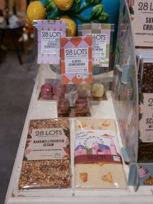 Besonderes Augenmerk gilt der Herstellung: Bei 28Lots entsteht so viel wie möglich in traditioneller Handarbeit. Haselnüsse werden von Hand auf die noch warmen Schokoladentafeln gelegt, feine Details liebevoll ausgearbeitet. Möglich wird dies durch das perfekte Zusammenspiel von Schokoladensommelier Matthias Spacek und seinem Team. Seit September 2022 ist Spacek der erste geprüfte Schokoladensommelier Wiens. Mit Blick für jedes Detail entwickelt er kreative Innovationen und entdeckt neue Geschmackskombinationen. Das Ziel ist klar: ehrliche, raffiniert komponierte Schokoladenprodukte, die überraschen und zugleich Freude bereiten.