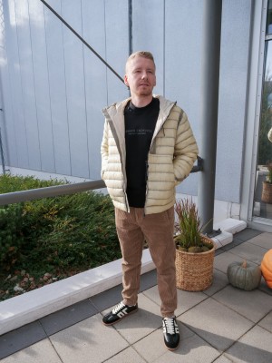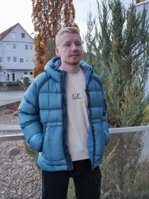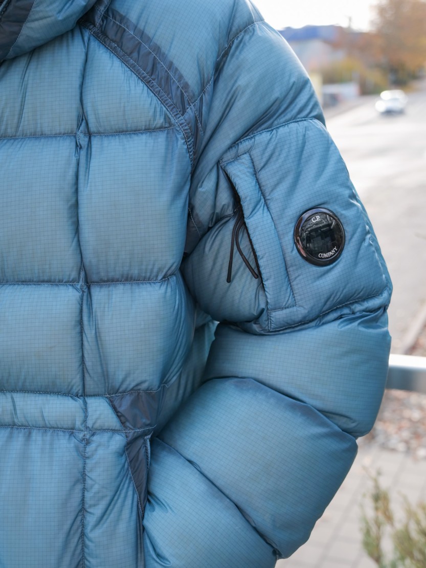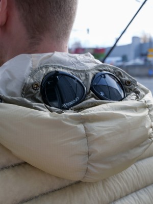 Die beige Variante präsentiert sich etwas ruhiger, aber keineswegs weniger besonders. In Kombination mit einer Cordhose und einem schwarzen Shirt entsteht ein smarter Casual-Look, der zeigt, wie vielseitig C.P. Company getragen werden kann. Charakteristisch für C.P. Company sind die einzigartigen Designdetails – allen voran die legendäre Brillenapplikation in der Kapuze, die längst Kultstatus erreicht hat. Dieses ikonische Element ist mehr als nur Dekoration: Es spiegelt die funktionale Ästhetik wider, für die die Marke seit ihrer Gründung bekannt ist.