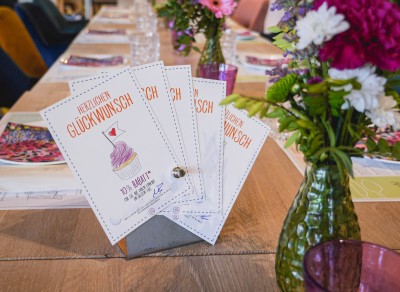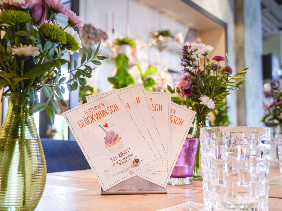 Und das ist unser Geburtstagsgeschenk für Sie und Ihre Gäste: 10%-Rabatt auf Ihren Einkauf an diesem Tag! Und so lassen wir Sie hochleben: Unser Service-Team begrüßt Sie herzlich und begleitet Sie an Ihren von uns dekorierten Geburtstagstisch. Dort erhalten Sie und Ihre Gäste eine Geburtstagskarte mit 10% Einkaufsrabatt für den Tag. Gut gestärkt können Sie sich danach alle ins Shoppingvergnügen stürzen.