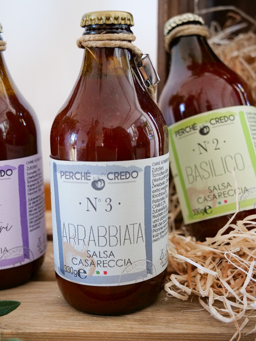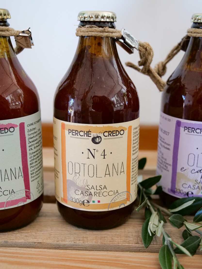 Mit den Salse Casarecce Salentine holen Sie sich authentischen Geschmack direkt aus Apulien in Ihre Küche. Ob Cacio & Pepe, Salsa Madre, Basilico, Arrabbiata, Olive e Capperi, Ortolana oder Amatriciana – jede Variante überzeugt mit intensiven Aromen und purer mediterraner Leidenschaft. Hergestellt von der Manufaktur Perché ci Credo, die seit 2007 für handwerkliche Qualität und innovative Rezepte steht, entstehen diese Saucen nach traditioneller Art – ganz ohne Konservierungsstoffe, Zusatzstoffe oder Farbstoffe.