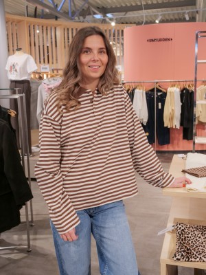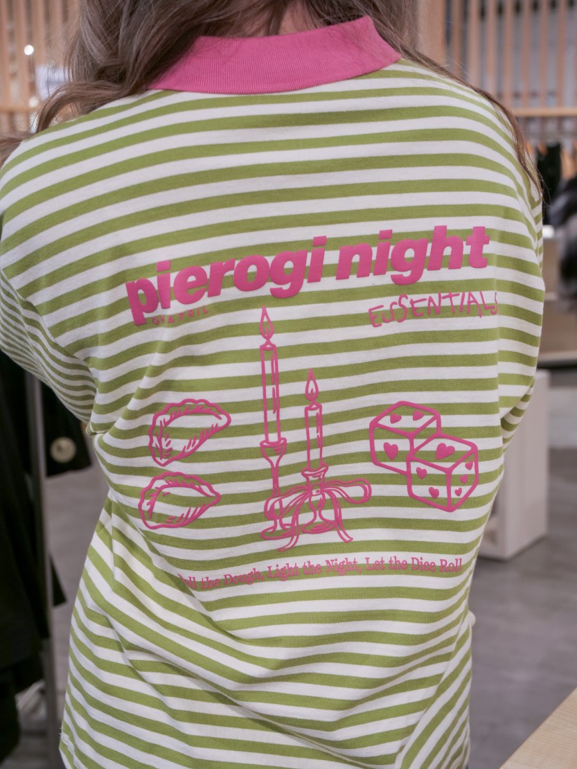 Einen sportlich-modernen Akzent setzt das Jolina Polo mit Flachstrick-Kragen im Oversized-Boyfriend-Schnitt. Der Rückenprint „Pierogi Night“ verleiht dem Style seinen typischen OH-APRIL-Charakter. Das Polo ist in Dark Rose/Beige sowie in weiteren Farbvarianten wie Grün und Braun verfügbar.