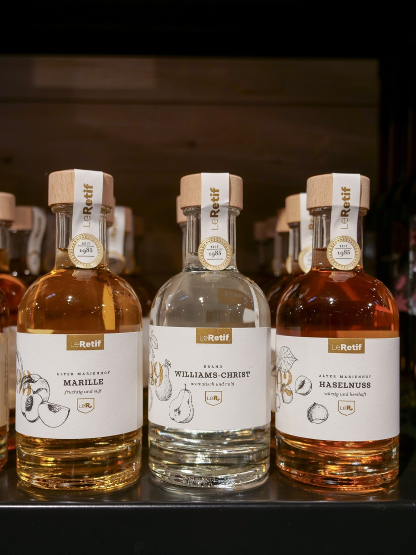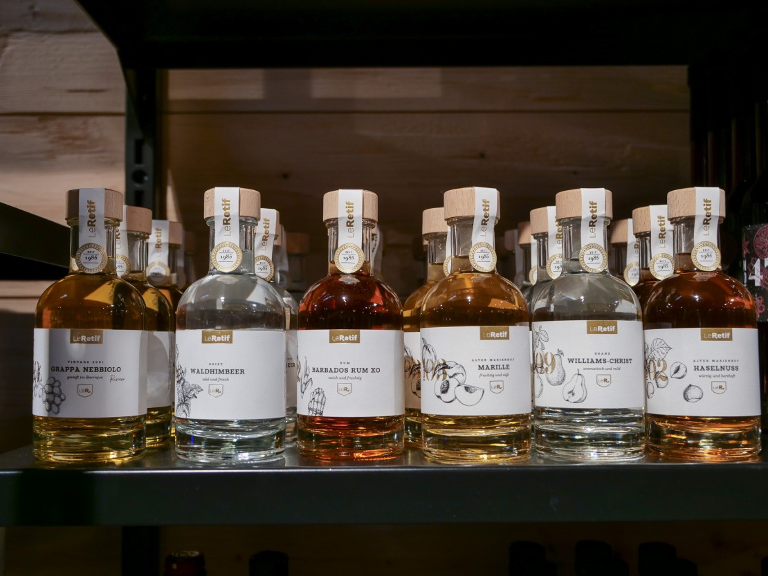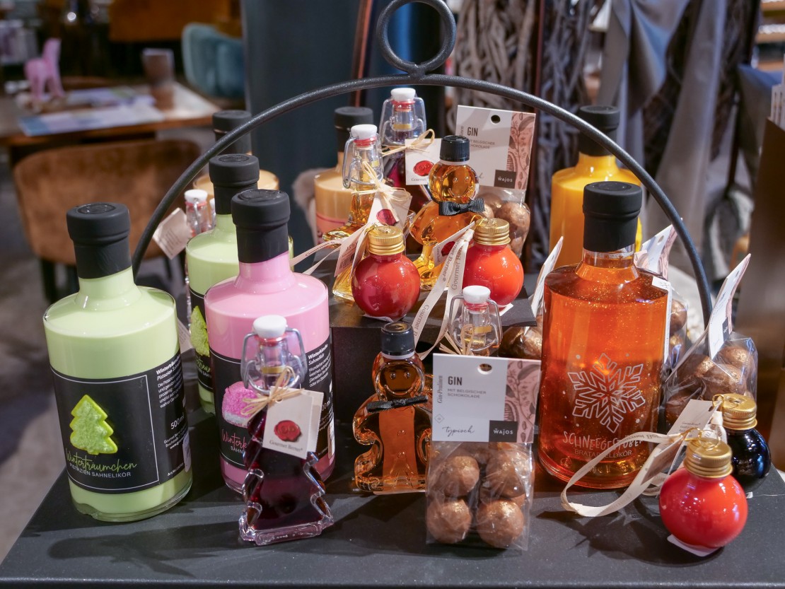 Genussmomente Auch kulinarisch wird’s bei uns sinnlich und verführerisch. Ob Schokolade, Trüffel, Matcha oder Pistazie – diese Aromen begleiten uns durch die kalte Jahreszeit. Neu im Sortiment sind die feinen Köstlichkeiten der Marienhof Brennerei Le Retif, die mit regionalen Likören begeistern, sowie die beliebten Feinkostprodukte von Wajos und Gourmet Berner – Genuss in seiner schönsten Form.