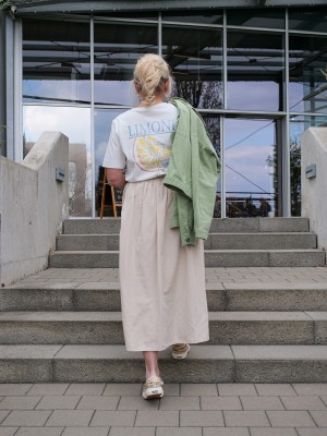 Verspielte Prints und liebevolle Zitronendetails verleihen den Looks eine besondere Leichtigkeit und machen jedes Outfit zu einem kleinen Statement. Ob lässig kombiniert mit gemusterten Hosen oder feminin interpretiert mit fließenden Röcken – die Kollektion zeigt, wie vielseitig sommerliche Mode sein kann.